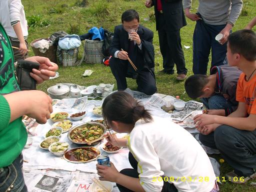 我们今天很高兴。我们走的时候还把垃圾都捡起来,都把垃圾都带走了,保护了环境。