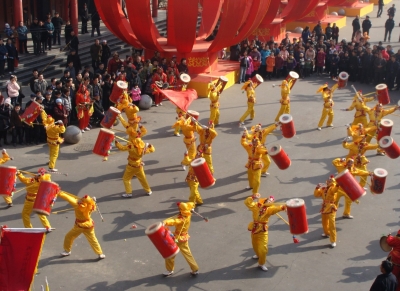 兰州太平鼓是一种传统民间艺术,至今已有600多年的历史了。关于太平鼓的来源,众说不一,一个说法是明朝朱元璋命大将徐达,冯胜率军西征,元朝王保固守兰州,久攻不下,适值元宵,兰州城闹社火,徐达受到启发,命士兵伪装耍社火,让士兵将兵器藏在长鼓中,乔装打扮,混入城中,锣鼓为号,旗卷而偃,旗开而攻,里应外合,攻克了城关。为庆贺克敌制胜,祝愿天下太平,所以称此鼓为太平鼓,又称得胜鼓。1999年10月,永登县若水镇红玫瑰村鼓队赴太原参加国际锣鼓节,皋兰县石洞镇郭家坪村的一支鼓队进京参加"龙潭杯"全国民间花会大赛的角逐,独占鳌头,捧回金杯。天下第一太平鼓将成为一个带有传奇色彩的美丽动人的传说,在皋兰县一代代传下去。有一年,皋兰县西岔镇铧尖村的八十位精壮男儿以"中国兰州太平鼓队"的名义,挥着祖祖辈辈传下来的大鼓劲了北京城,在第十一届亚洲运动会艺术节上独领风骚,出尽了风头,赢得了天下第一鼓的盛誉。这黄土地上的鼓,不正是我们所希望的一种体现民族精神的文化吗?