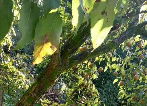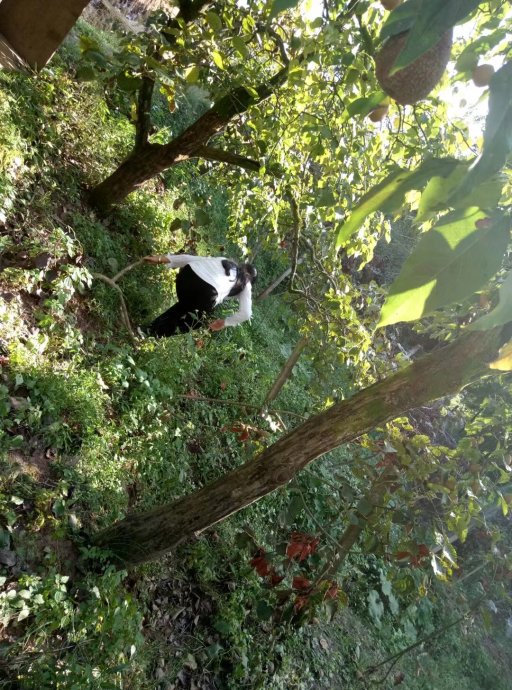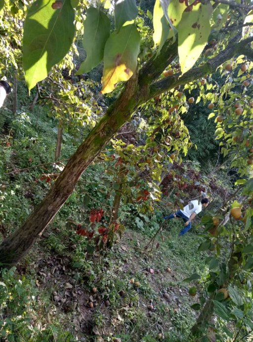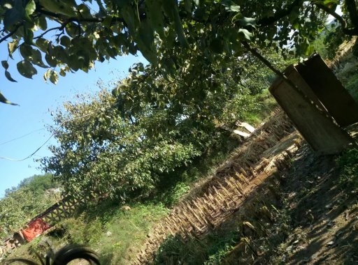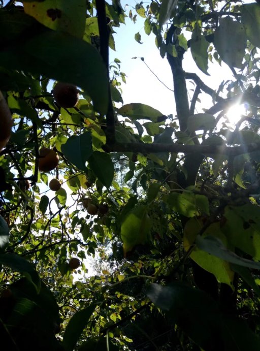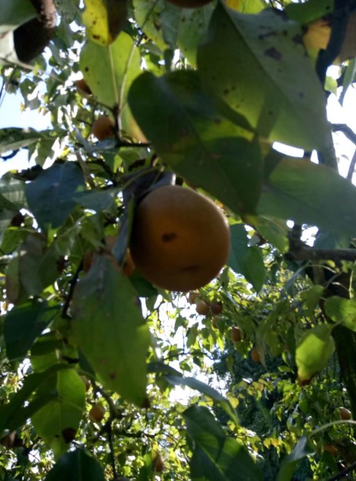 这次,国庆节这天,姐姐特意从成都赶回来,说是给同学和老板带点我们这儿的特产。于是,我和姐姐,姐夫,侄儿一起去挑梨,一下去,就看到了田埂上刚打完了谷子的半桶。现在正在梨树下面乘凉呢!刚好这天,天公作美,太阳从密密麻麻的梨树缝里,照在树枝,树叶上,是那么美,那么美。有的树枝,已经耷拉不起脑袋了,因为,树枝的枝丫上面,有很多的梨子,有些树枝都快被梨子压断了,拿一个小点的梨子,都有八两,一斤,能压不断嘛。今年,比前几年还有丰收一些。当然太大也不是很好,所谓,树大招风的嘛,所以有些上面有洞。但是很少。