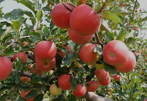 果园里,苹果你挤我碰。紫色的葡萄一大串一大串挂在枝头。农民伯伯带着丰收的喜悦正忙着摘果子,果园里时时飘荡着他们的欢笑声,孩子们的打闹声……