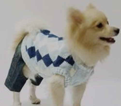 不过,你可不要被欢欢的外表所欺骗。它怎么可以没有一身衬得起这个名字的行头呢?有一天早晨,我从衣柜里精心挑了一件有三条小鱼的毛衣,可能我急着出门,手脚忙乱,竟把毛衣给它穿反了。我想:反正是小狗,穿反了就穿反了吧,沒人会注意的。可欢欢哪有这么好糊弄呀,它大叫起来,好像在说:"你看你给我穿衣服都这么马虎,你让我怎么去见我的朋友们啦!还不快给我重新穿。"没办法,我只好乖乖的将毛衣重新穿在它的身上。