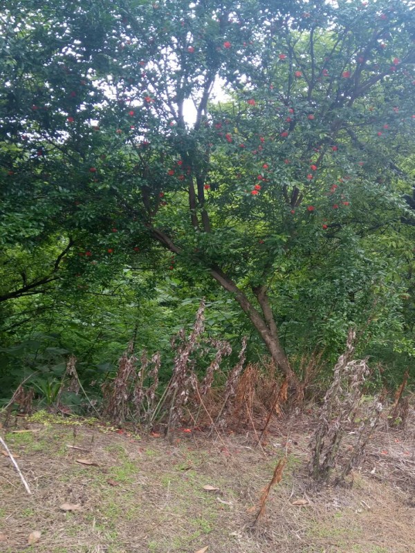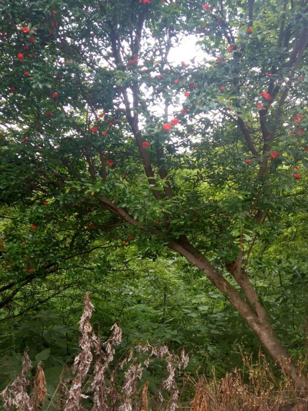 远远看去,石榴树真的好小,感觉弱不禁风的样子,但实际上呢,这石榴树还是不小的,在我小时候的时候,这棵石榴树还不怎么大,我就去折断树条,小时候习惯折个树条在手里玩,每次就去折石榴树的树条。