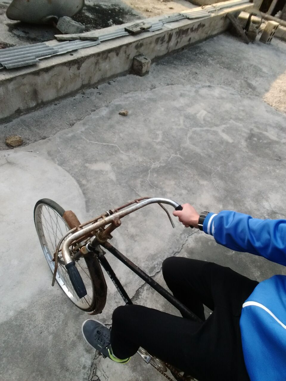 第二天中午,爷爷推出了一辆老式自行车,说这自行车跟了他十多年,今天就用这个教会我。记得我刚上车的时候,吓得手直哆嗦,脚也僵硬的半圈半圈地搅转着。爷爷用手抓着后座,说;"眼睛目视前方,手控制好方向,有我在你身后,不会让你受伤的。"