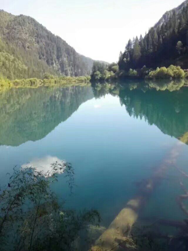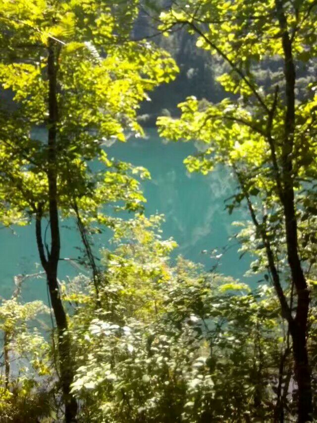 九寨沟,绿意幽幽,青山如黛、碧水连天,别有风情。深绿色的海子像一块块翡翠镶嵌在山林中。从五花海的夏季,绿荫浓浓,清蓝湖水相缠绕,阳光洒在湖面上,到幽蓝的镜海,处在雪山与绿野的包围中,尤如一块亮丽的蓝宝石。微风略过宁静的湖水,勾起丝丝涟漪,岸边芦苇也随风婀娜摇摆。湖水清澈,泉水激石,波澜不惊。就好像斗折蛇行,不可知其源一样。夏日,绿野无边如湖边的绿毛地毯般,柔滑舒适。夏季的海子如同碧玉,那清澈见底的湖水,嫩绿的叶子,相伴相映。
