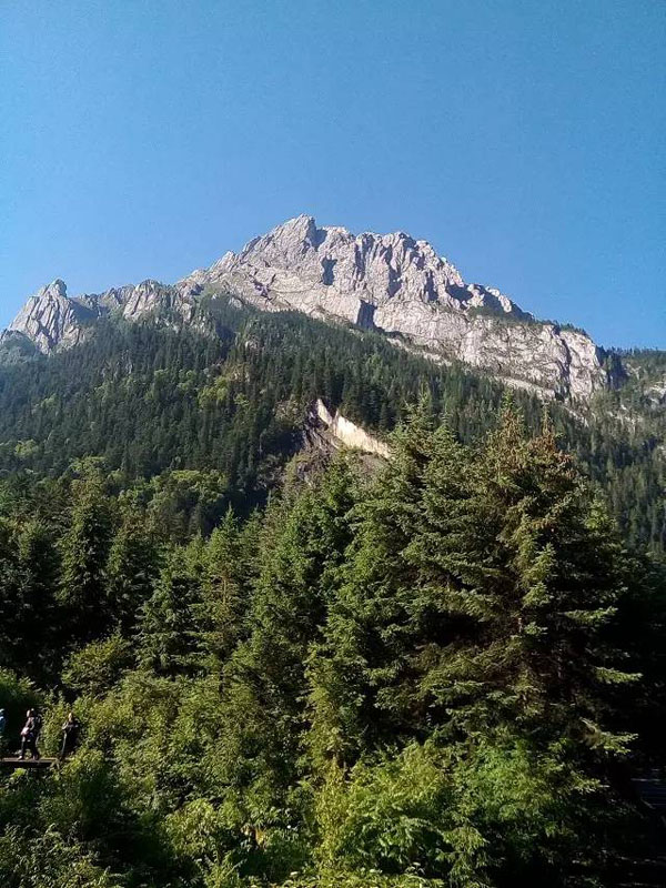 树木长出新的嫩芽,山上的积雪还没有融化,但是漫山遍野的杜鹃花全部开放了,一眼望去,看到五彩池,我心中的感慨油然而生:多么美丽的景色啊!这个五彩池缤纷绚丽,有五种不同的颜色,让人看得眼花缭乱,却又有进入仙境一般的感觉。看到五彩池,我仿佛觉得这个池子就是天空,一条彩虹在这个池子里映现出来。格外奇幻、让人流连忘返。