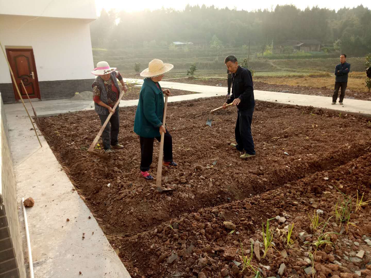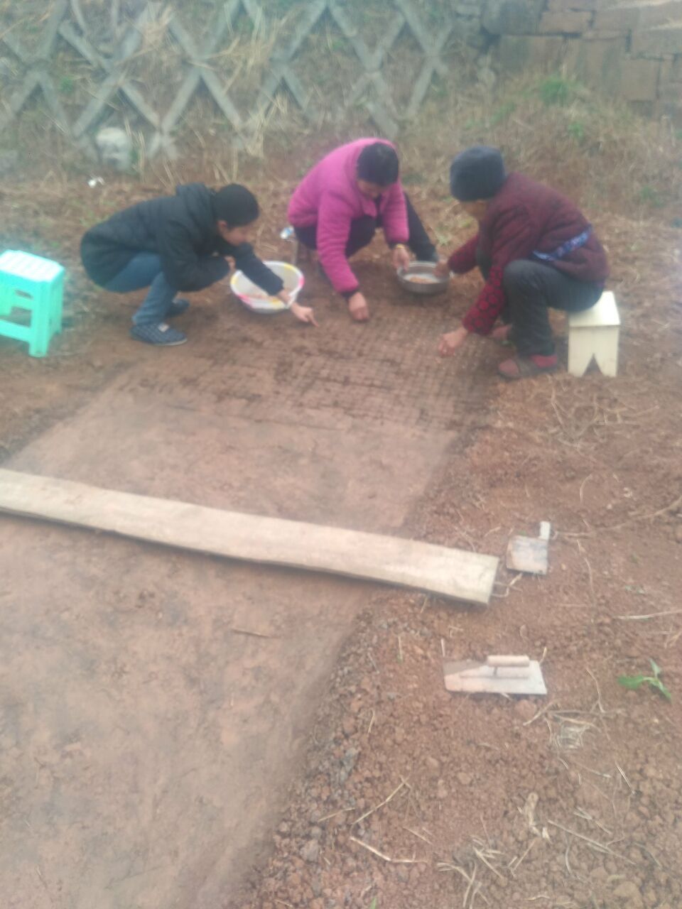 别看这就完了,还有很多了,把那些弄好,就在用泥土铺在上面,最后用塑料布把它们盖好。这才算是基本完了。