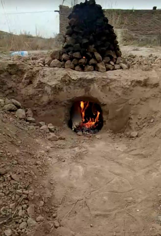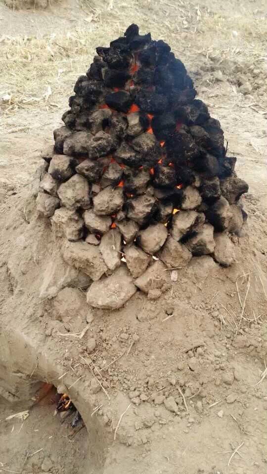 第四,我们用柴火烧土时,要不断放入柴,烧到土质变成火红色的,大概需要1~2个小时左右。