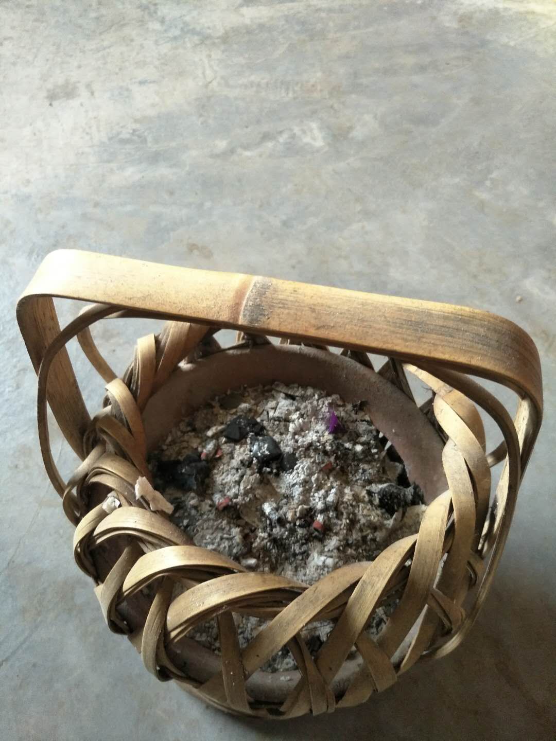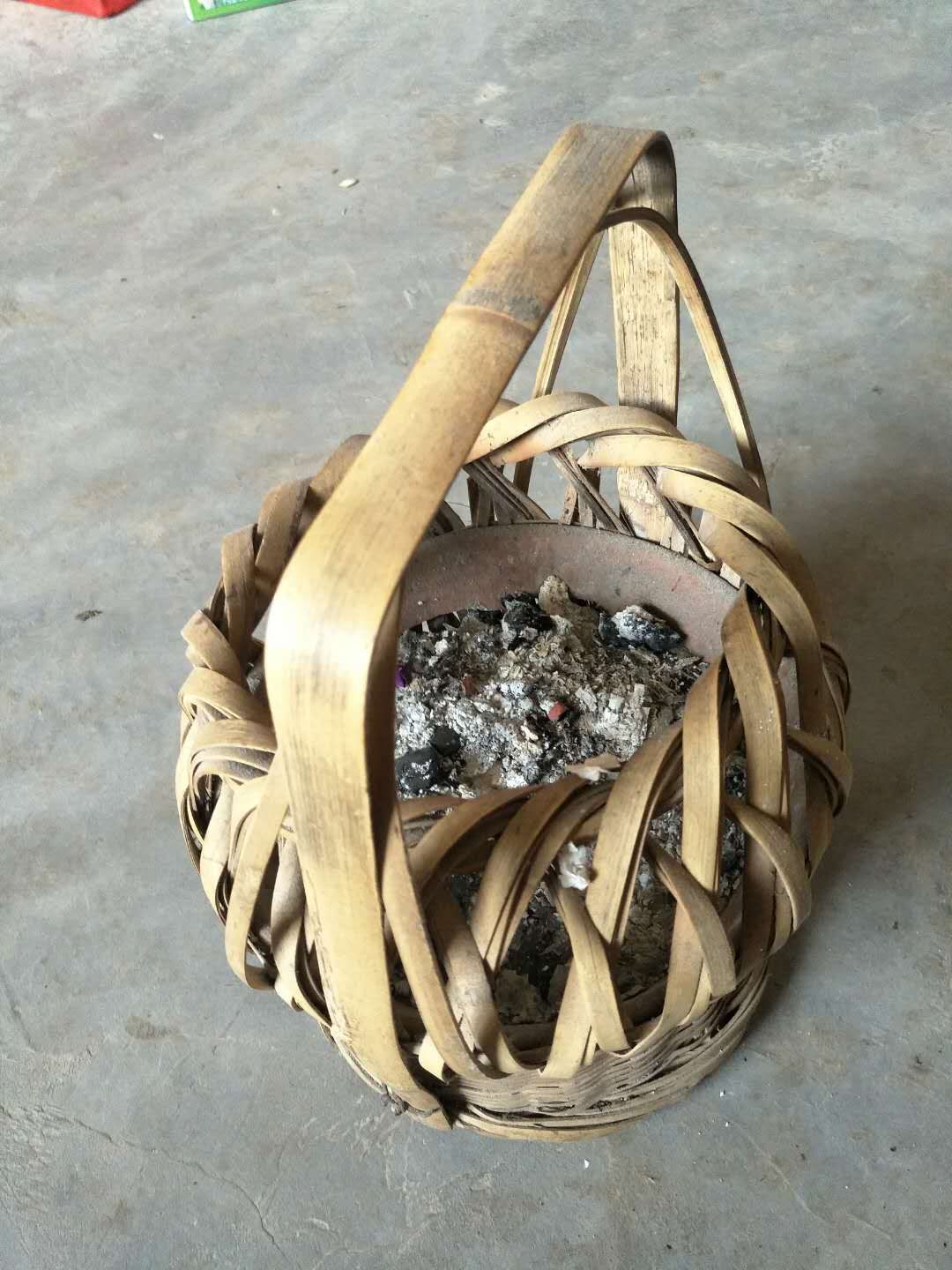 烘笼怎么用呢?在柴火灶里夹出一些木碳来,或者是一些碳石类的都可以,把这些东西放进钵里点燃就可以了。冬天,老人、小孩提着它都觉得很暖和的。烘笼除了取暖之外,人们还用它来烘干一些未晒干的衣物、鞋袜。每次提着烘笼,我不由得想起去世的爷爷来。