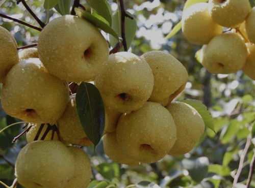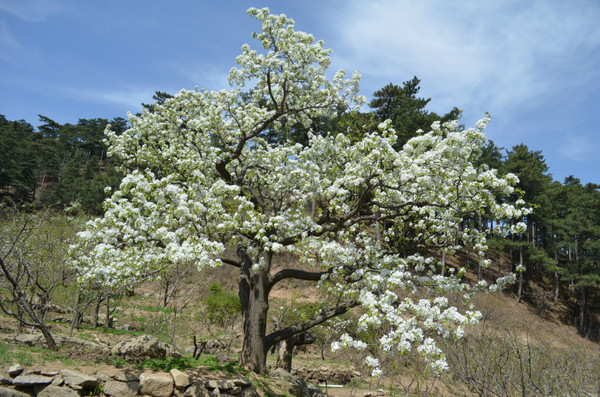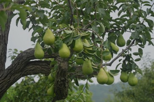 我家的梨树长在我们家的小溪旁边一点。