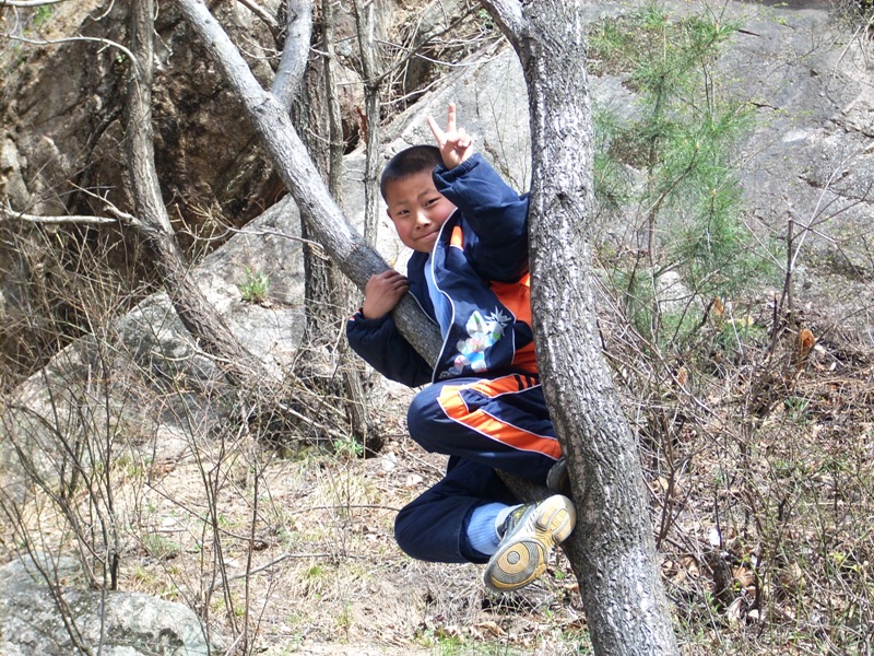 在这阳光普照的日子里,人们不会忘记出来玩玩:逛一逛,爬爬山等。看,我的弟弟调皮吧,竟然爬到树上去了,他玩得多麽开心!