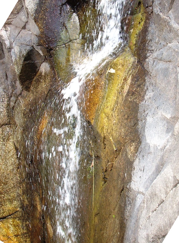 在峭壁上流淌着一股清泉,有时慢,有时急,看,像不像小瀑布,在阳光的照耀下银光闪闪。
