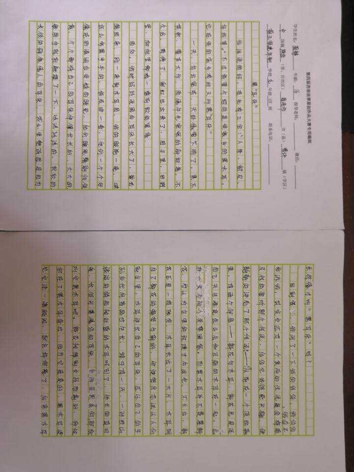 一天,乌云密布,天好像要下雨了,果不其然,雷声大作,但是雨下的不大,像牛毛密密的斜织着。不久后,雨停了,彩虹出来了,院子里、田野里、树林里都有着一番别致的景象。