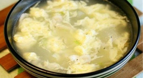 在铁锅里倒入适量的水,用旺火把水烧沸腾后放入姜、葱、蒜、动物骨头,熬半小时后,再把姜、葱、蒜、骨头从水中滤出,这时放入适量的淀粉,再把碗中的鸡蛋倒入,转至小火,让蛋花全都浮起来,放入小葱、鸡精等。色香味俱全的虾米汤就做成功了。