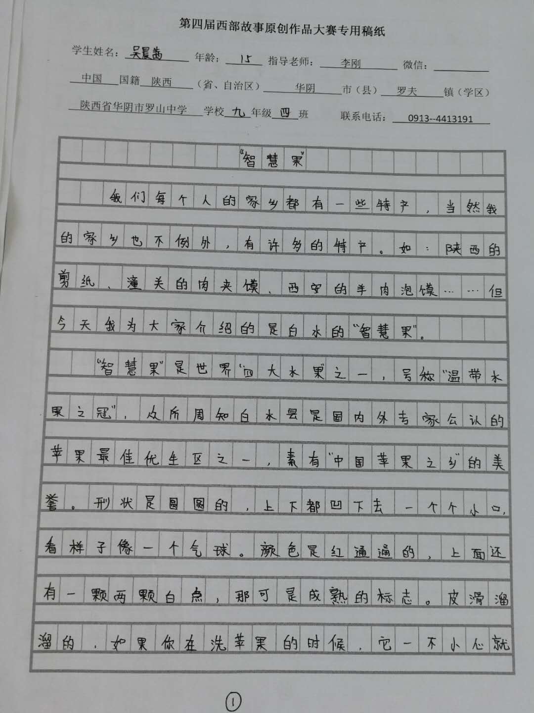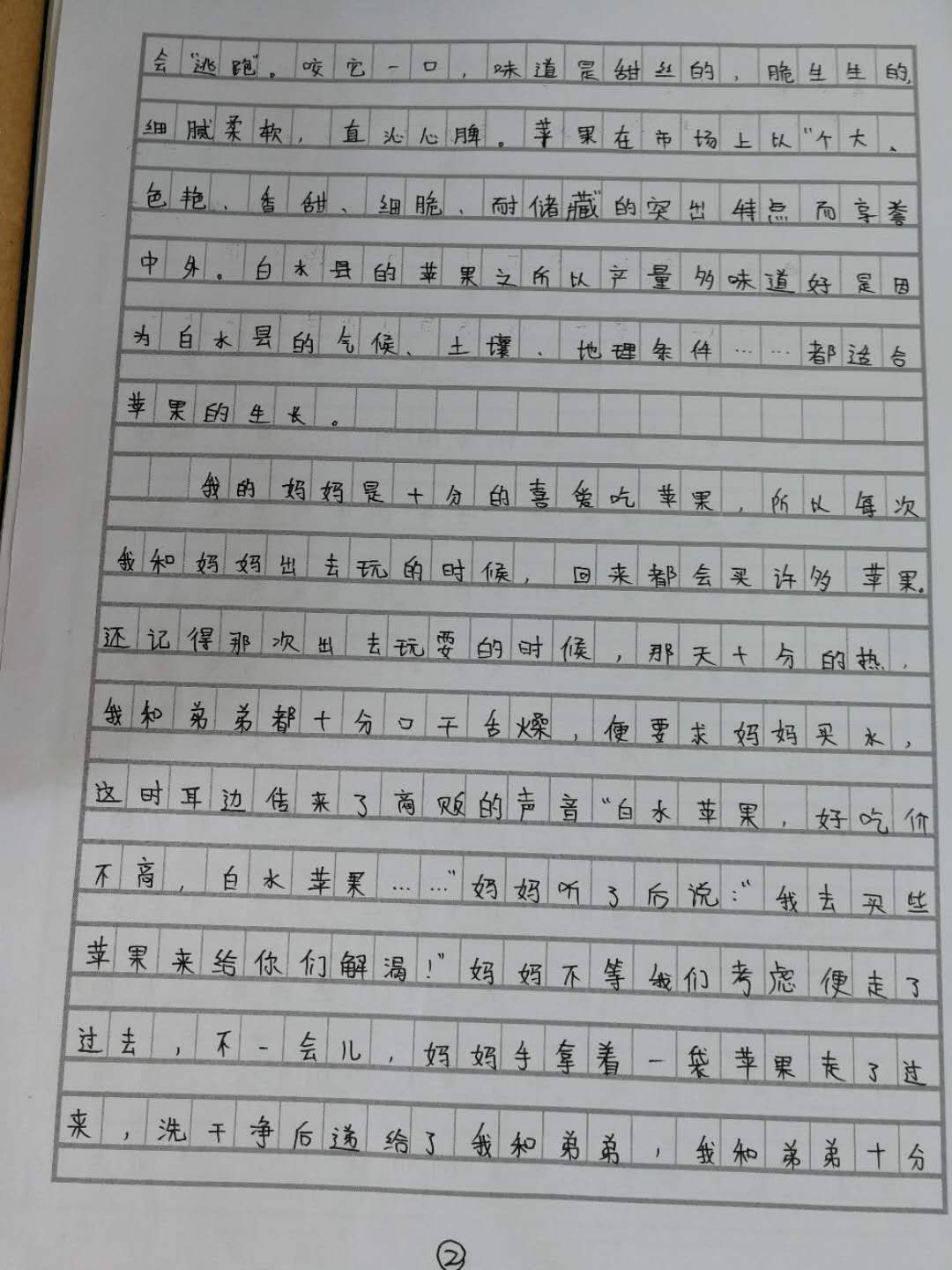 我们每个人的家乡都有一些特产,当然我的家乡也不例外,有许多的特产。如:陕西的剪纸、潼关的肉夹馍、西安的羊肉泡馍……但今天我为大家介绍的是白水的"智慧果"。