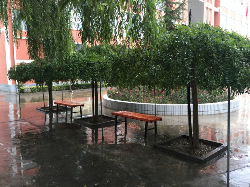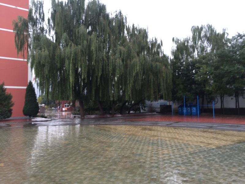 天刚刚亮的时候,天空便没有太阳,一直是乌云密布,我以为天马上要来一场鹅毛大雪,不久天空开始下起了泥水,渐渐得水越来越清澈,我才开始意识到天下的是雨不是雪,我的心情开始变得开心起来,因为,这是今年的第一场雨。雨越下越大,我头顶上的雨伞被雨水击打的声音渐渐得大了,噼里啪啦的想了起了。周围的弥漫着浓浓的水汽。不过还是可以看清楚周围的景象,小树被打歪了,叶子被打掉了,刚长出来的新枝被的满地都是。街上显得一片凄凉。