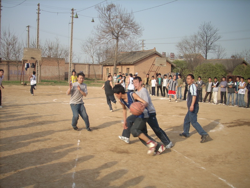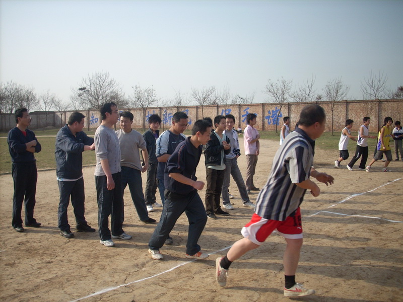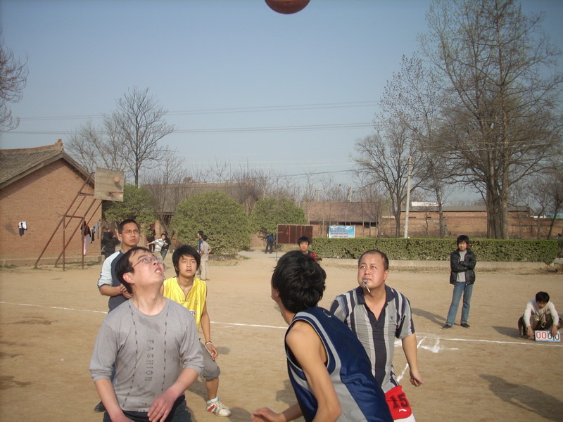 学生队的成员基本上是高二年级的学生,他们一个个也都虎生虎威,球也打的很棒,所以,今天的比赛一定很激烈,到底鹿死谁手,事先无法定论。还是让我们拭目以待吧。好的,开始了,一阵急促的哨音后,两队成员进入赛场。