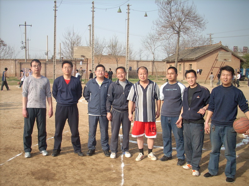 为了参加区上组织的"健康杯"篮球赛,学校这段时间抓紧进行篮球训练.体育课、午饭后操场上随时都可看到球员的身影。今天下午,教师队要和学生队进行一次“较量”。这便是我校教师队的所有成员。
