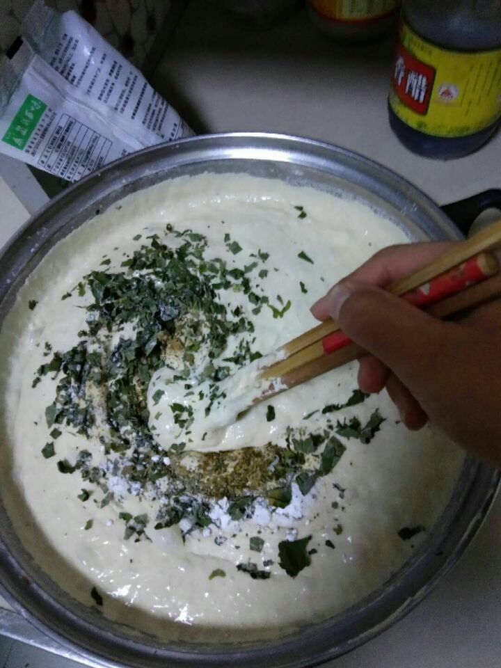 面疙瘩的做法很简单。先往盆子里倒适量面粉,接着往面粉中倒适量的温水,拿一双筷子均匀搅拌10分钟左右,用一个锅盖把盆子里的面粉盖好,发酵30分钟,因为时间越长发酵出来的面粉就越饱满。发酵好了的面团加入藿香叶子、盐、花椒面等。再搅拌均习,就可以往锅里放油了,等油温升起来就会发出"嗞嗞"的声音,然后可以用筷子捞盆子里搅拌均匀的面了,只需要用筷子一个接着一个轻轻一夹放进锅里炸成黄色,它的形状就自然而然的形成了。过一会儿就要用筷子给慢慢形成的面疙瘩翻个身,就这样反复炸几分钟就好了,炸好的面疙瘩是金黄色的,立马就能闻到香味。刚出锅的面疙瘩有点烫,所以用勺子捞出来稍微凉一会儿才可以吃。面疙瘩的吃法也很有趣。可以用手拿着吃;也可以用筷子夹上吃;还可以用一根又长又细的竹签把它疙瘩串起来吃。用嘴一咬,又脆又香,一瞬间,浓浓的美味都回荡在口腔中。