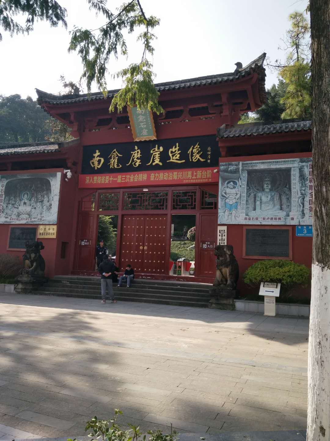 南龛山苍松挺拔,翠柏长青,以保存有与大摩岩造像闻名。现存的完整佛像设计122龛,1800余区。在峭壁之腹分层列龛。它开创于隋唐。后世不断增刻,除佛像外,碑幅中以隋唐时巴洲刺史严武的秦表为有名。