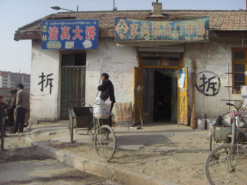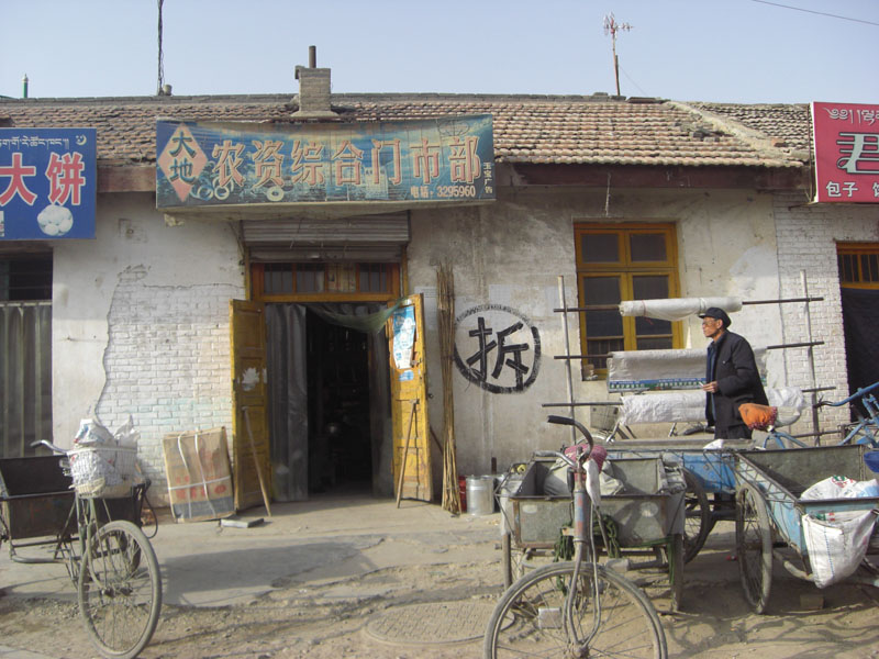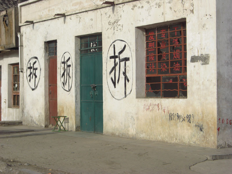 这些房子已被规划拆迁重建,每个即将要被拆迁的房屋墙上都用黑墨画上一个大大的拆字,让人感到有些惋惜,似乎像被判刑的囚犯一样,看起来给人一种说不出的感觉,因为有一天它将消失在这个小镇上,而在它曾所在的地方会有新的主人来代替它们。