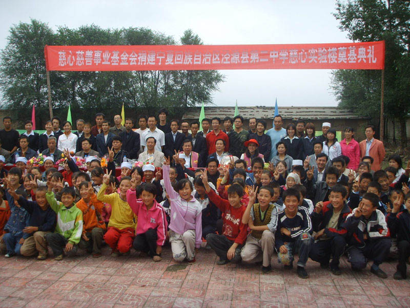 2007年8月27日,这一天对我们泾源二中的全体师生来说是一个喜庆的日子,我们迎来了为我校捐盖实验楼的台湾慈心慈善基金会董事长谢正达叔叔、执行长温婉伶阿姨,他们要为我们的实验楼奠基。