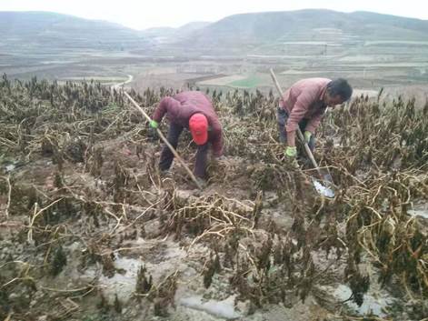 在我们这里谷雨的时候就已经种下了土豆,然后到了十月份左右,就要挖土豆了。人们这时候早出晚归,扛着铁锹挖土豆。把土豆挖出来后,就可以看到一个秧苗上连着好几个土豆,把它们抖下来,堆成好多堆,然后装在袋子里拉回家,这是一家人一年来主要的食物。怕土豆坏了,存放不住,人们总要把土豆贮存在地窖里。
