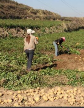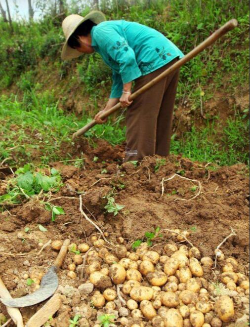 的土豆。我先挖了两株,确定土豆的间距,再按照这个间距,就能