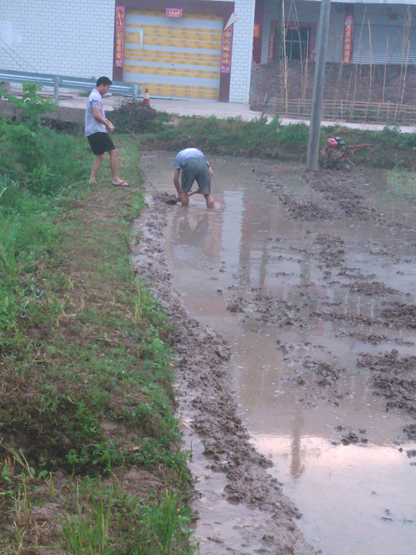 扯盘子分为上下两部分。上边部分是套绳子拉的,下半部分是靠推的:下半部分是一个厚薄适当的长方形木板,在木板的中问钉上一根长的圆木头,圆木头的顶端钉一根短的圆木头。一根绳子的一端穿过木板左边的圆孔并打上结,另一根绳子穿过木板右边的小圆孔并打上结,再把两根绳子紧紧地捆绑在长圆木头上,剩余的部分再紧套在小竹杆上,扯盘子就做成功了。 农村插秧收水时,为了管住田里的水,这就要用上扯盘子了。在田梗上一个人拉着绳子使劲往上提,而在田里的人摁住扯盘子使劲推泥,让田里的稀泥垒成一条梗,这样田里的水就不会流失掉了。两个人齐心协力干活也轻松多了。