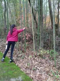 首先给大家介绍的是家乡的竹林。远望绿色的竹林,郁郁苍苍,重重叠叠;近看竹林有的修直挺拔,直冲云霄;有的看来刚出世不久,却也亭亭玉立,别有一番神采、韵味。那墨绿色竹林的枝叶犹如一顶碧绿色的华盖,遮住了太阳、白云、蓝天,给大地投下了一片阴凉。一片片竹林遮住了后面的房子,好像谁在用一张巨大的画纸上泼洒了一片绿色,仿佛用手轻轻一抹,手也会变成绿色的了。进了竹林,就好像进了迷宫一样,密密麻麻的竹子围绕着你,就像一个个绿色的巨人伫立在大地上。再抬头一看,清翠的竹叶装点着竹子,一阵微风吹来,只听见"唰唰"的声响。