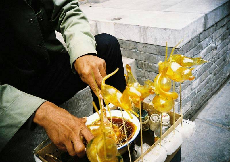 糖人是麦芽糖做的,分为吹的和捏的两种。