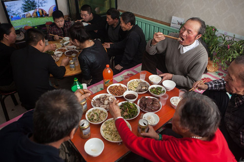 杀年猪可是有讲究的,为图吉利,要先请人挑好吉日再杀猪,以图来年六畜兴旺、事业顺利、财源滚滚。杀年猪时,人们还要放上一挂鞭炮,据说是既是为了驱邪,也是庆贺今年的丰收。杀了猪,男主人们先要切下猪身上最好的肉,上贡给"灶王爷",以此感谢"灶王爷"并祈求他保佑自己来年能获得大丰收。接着,人们还要摆上几桌酒席,邀请左邻右舍来家里吃上一顿大餐,共同分享丰收的喜悦。每到腊月,全村人你家吃了走他家,这家吃了走那家,像拜年一样,热闹极了。此时若有远来的旅客,乡亲们也会热情的拉着他一同分享这丰收的喜悦,并把他奉为座上宾,以显示当地人对远客的尊敬。