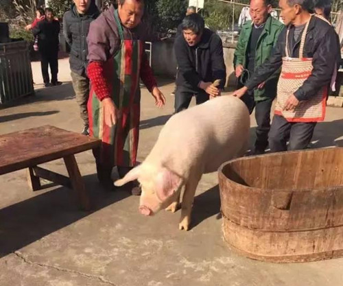我们这一带,一到腊月间,只要走近村舍,到处都能听见肥猪大叫的声音,这是村民们在杀年猪。一年一度春节临近,家家户户都要杀年猪,准备过一个丰盛的新年。