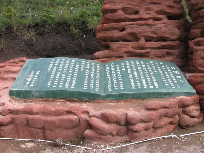 在山门口,有一块小石被雕成翻开的书页形,上面刻着火石寨国家地质公园的简介 ,游人一观,一目了然。
