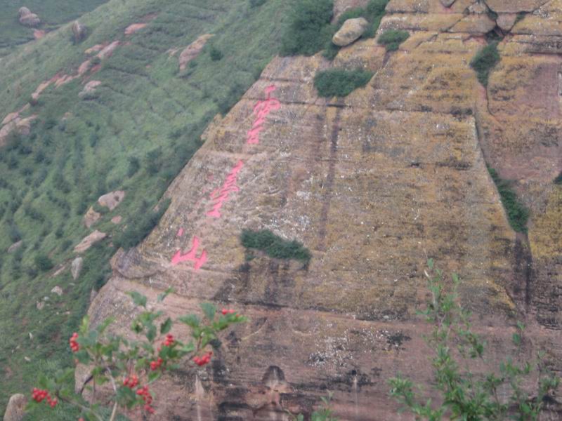 站在山门,用不着进入,一座巨大的红色砂岩丹霞地貌直扑你而来,砂岩上醒目地刻着三个大字——白雲山。