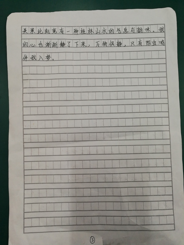 傍晚,独自走在幽静的小路上,看着山间美景此刻竟有一种桂林山水的气息与韵味,我的心也渐渐静了下来,万物俱静,只有那虫鸣伴我入梦。