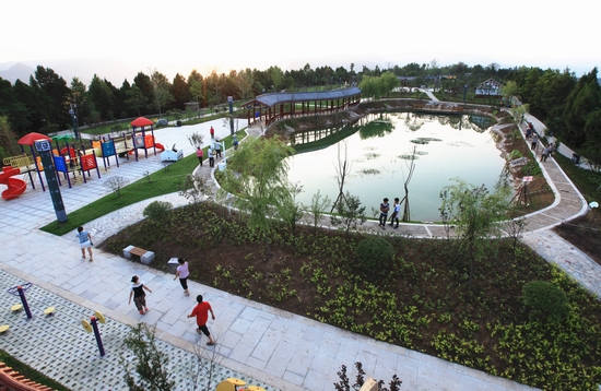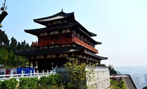 到了半山腰,第一眼看见的就是一座大型仿古建筑望王楼,整座楼都是用木头建成的,并且每扇门上都雕刻着许多成语故事,如同记录历史的笔记本一样。再往前走就能看见羽毛球场、网球场,游客们既可以观赏景色,又可以锻炼身体。