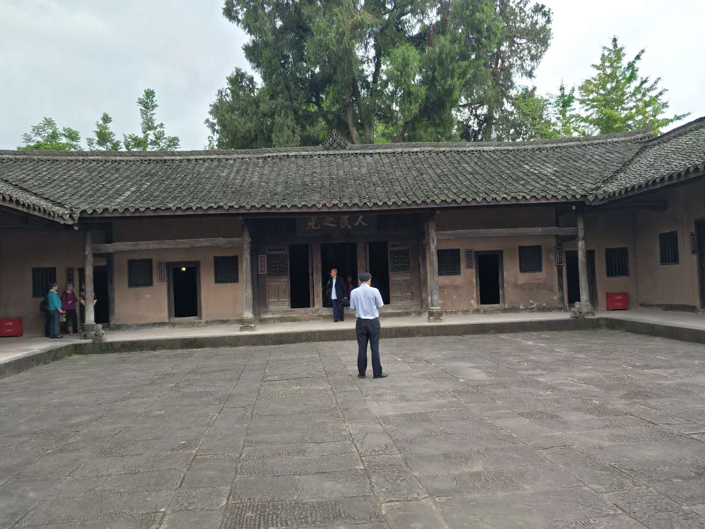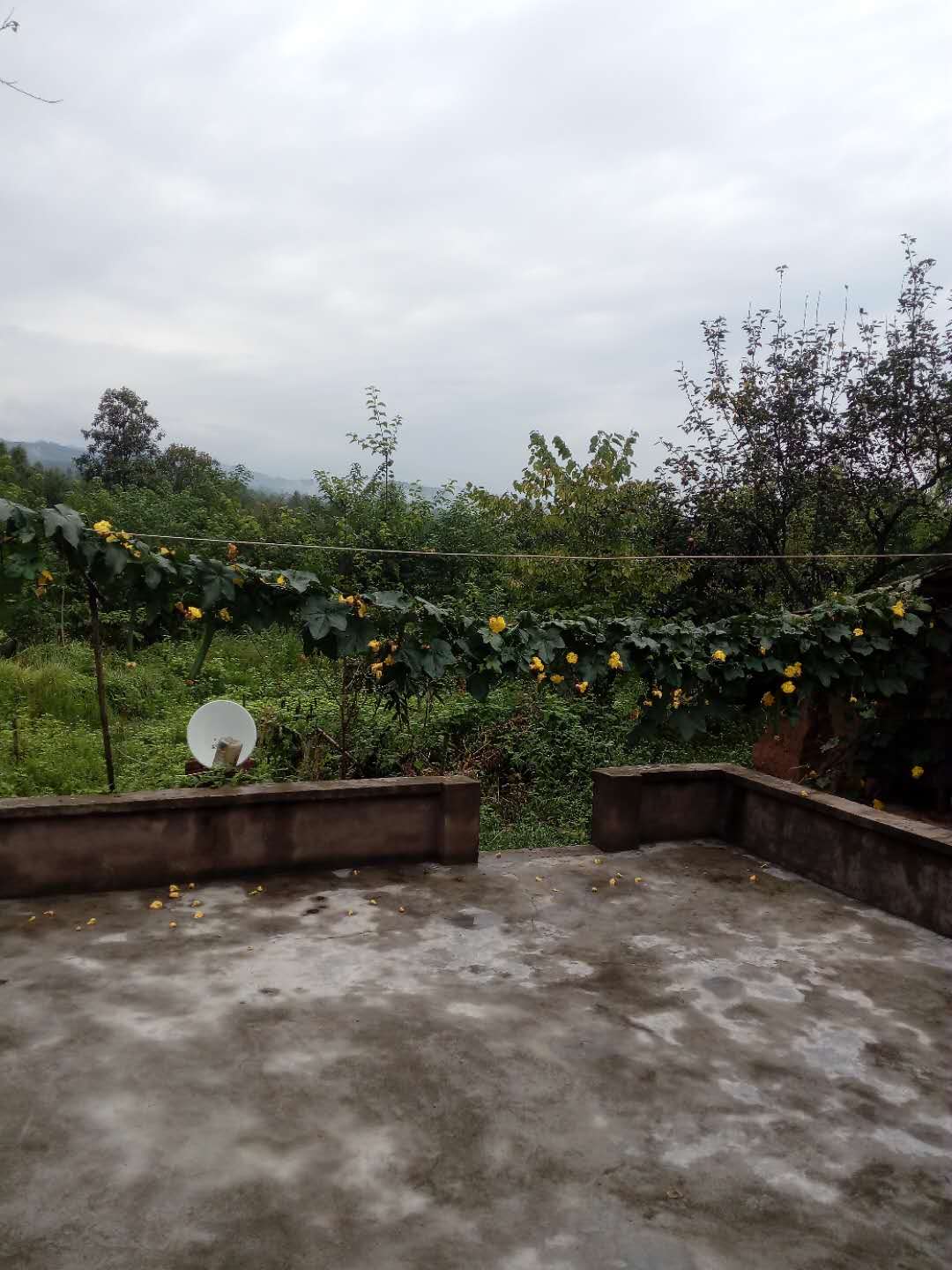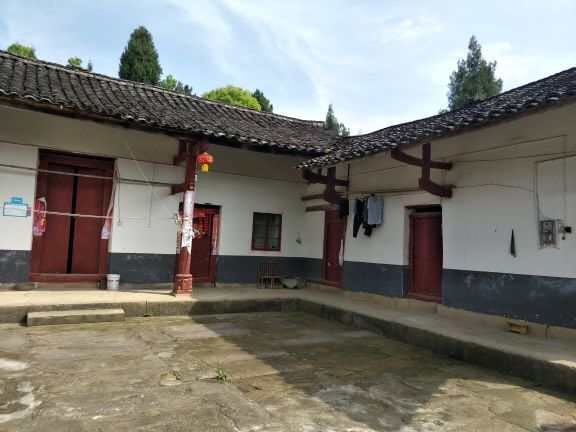 大姑家的房子看起来很旧,听说是建成近100年的土墙房,土墙表面是由木屑、草屑与少量的水泥混合后涂平的,用大钢锤和钉子都不一定能将它击穿。房顶是人字形的瓦木结构,纵横交错的檀子和椽子支撑着一行行青色的瓦,看起来似乎不够坚固,其实它蕴含着建造师们几十年汇聚的高超技艺,牢固着呢!这座老房子,远眺是一套普普通通的三合院,当你走进房内,可见卧室、客厅、厨房、厕所、猪牛圈……它们组成了一个大庭院。其中客厅最大,卧室也很宽敞。堂屋两侧立有20多米高的圆木柱子,它上面的“金犬辞岁岁岁安康,银猪逢春春春顺心”大红春联还挺醒目。院内面积最大最显眼的便是院坝了,它由长方形的青石面成,无比平整。院坝的前面是菜地,右边也是菜地,房屋周边的植物为小平房增添了不少色彩,远远看去似碧一般。