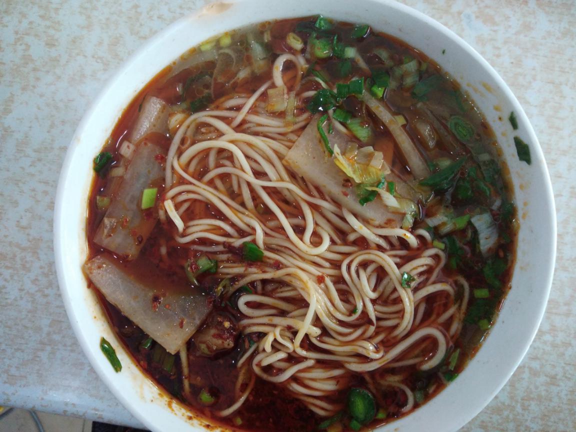 端上这一碗冒着热气的牛肉面放在桌子上,默默欣赏它的外表,闻着它的香味,你会忍不住一把抓住筷子,搅拌一下品尝一口。那种鲜味,辣味,带着牛肉的香味进入你的嘴里,刹那间,你就会感到要好吃的飞起来,这时候你在喝口汤,那鲜香的汤汁在你口中打转,牛肉的香味也在你口中慢慢溢开。哇!那时的你一定会感到无比的惬意。