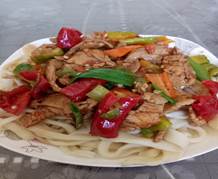 西北甘肃是一个有很多美食的地方,有很多的面食是让人回味无穷,牛肉面,羊肉泡馍,羊肉串等等很多的美味。可能现在你觉得比较常听见的便是牛肉面或在外地很多人称之为的拉面。今天要说的便是拉面的粗旷版拉条子。拉条子是甘肃比较常见,深得甘肃人民喜欢的一种面食。其做法和拉面很相似,只是它的分类没有拉面那么细,在拉面中有大宽,皮带宽,韭叶,二细,细的,毛细很多,其实看起来很复杂,其实面是同样的面,不同的是面的宽度和细度,这是根据个人的喜好而定。拉条子一般是介于二细上下的宽度,不过有些人也是很喜欢那种很宽的,嚼劲更好的。当然做一碗拉条子并不是一件很容易的事情,从和面,醒面,拉面,再到最终一碗热腾腾的拉条子,是需要不少时间的,这个制作的过程每一步都很关键,每一步都影响着后面的操作,如果面没和好,醒面就需要很长时间,如果没醒好,拉起来就很辛苦。如果这些过程都有一个很好的保证的话,根据自己喜欢的宽度,伴随着胳膊和手的甩动,在空中甩出自己喜欢的宽度,不要小看甩的这个动作,是真正鉴定你是不是拉面的高手,这个甩的姿势有人说像太极,有人说像秧歌,不管怎么说,拉条子的确是一个制作工序有趣的一种面食。再以抛物线的弧度将面下到锅里,最后在一碗热腾腾的拉条子上面浇上肉臊或自己喜欢的菜,将菜和面拌起来,当然如果有较多菜汁的话,面会更多的吸收菜的香味,口感和味道会更棒。别小看这一碗饭,制作过程传承着西北人对生活的热爱和对食物的感激之心。