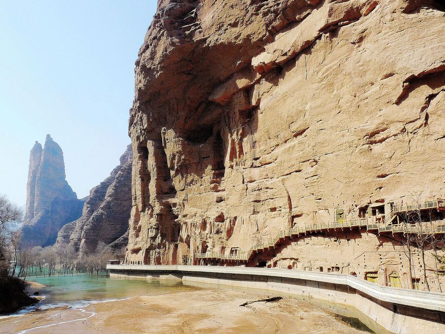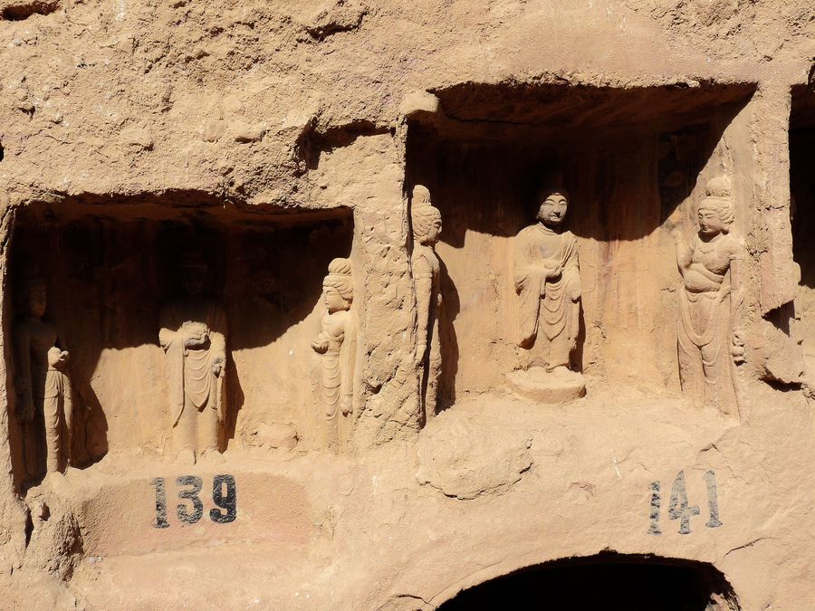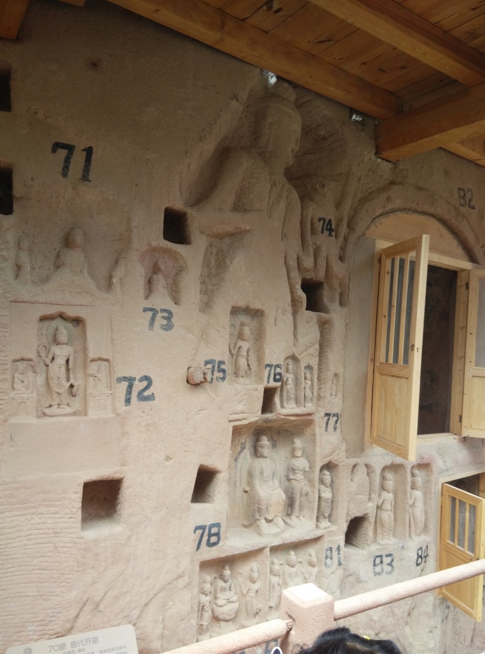 炳灵寺石窟分上寺区和下寺区,我们去的是位于黄河岸边大寺沟内的下寺区。石窟分布长约220米的悬崖上。计有窟龛195个,其中石刻造像676身,泥造像102尊,石胎泥塑26身,壁画约900平方米。