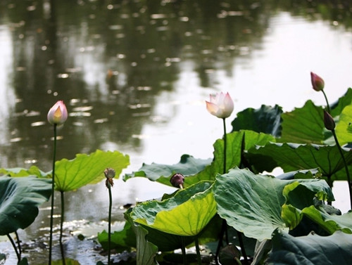池塘,家乡随处可见。夏天,池塘里的水清的都能看见池底的沙石。荷叶挨挨挤的从水里冒出耒,像一个个绿色的大圆盘。荷花羞答答地从荷叶间探出头来,有的才展开两三片花瓣儿;有的露出了嫩黄色的小莲蓬;有的还是花骨朵儿。池塘周围有许多垂柳,柳絮在风中荡秋千。池塘周围的小花展开了笑脸,嫩绿的小草也在和花比美呢! 从远处看,岸边的花草就像给池塘编织一个美丽的花环。蜻蜓也迫不及待地从远处赶来,停在碧绿的荷叶上,开始了它们的训练;五颜六色的蝴蝶成群结队地飞过来,落在艳丽的荷花上,落在池边的花朵上;鸟儿在柳枝上卖弄着自己清脆的歌喉;知了在树枝上叫个不停。 池塘里还藏着舞蹈高手呢!那就是活泼可爱的小鱼们,它们在荷叶间自由自在地游来游去。晚上,动物们在池塘举行了一场盛大的音乐会。青蛙先生蹲在荷叶上敲着鼓,蛐蛐和着鼓声有节奏地唱着歌,萤火虫为它们配置了五彩的灯光,小鱼和着鼓声、乐声在荷叶间跳着欢快的舞蹈。鱼儿跳得兴起,有时还一个接一个地跃出水面。月亮姐姐和星星弟弟也赶紧从家里溜出来,静静地欣赏着这场精彩的音乐会。
