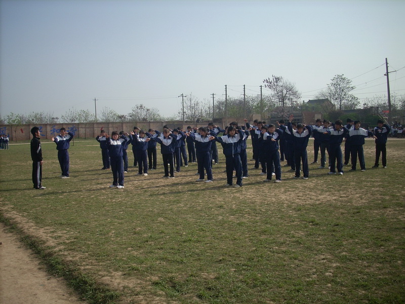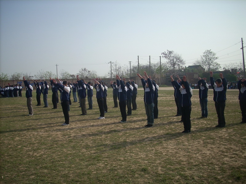4月初,学校安排了举行第三套广播体操比赛的活动。这项活动得到了各班主任老师的积极响应。赛前,各班主任在不影响教学的前提下,充分利用课间操、课外体育活动时间,在体育老师的指导下,进行动作和队列训练,各班级同学都专心认真,齐心协力,争取在比赛中取得优异的成绩。
