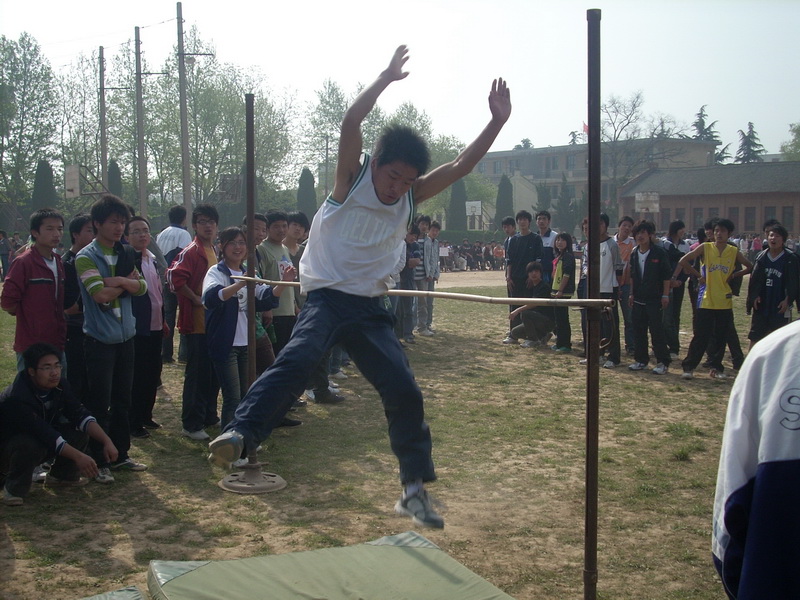 田赛这里也异常热闹,这里是跳高比赛现场,运动员同学都跃跃欲试,高度也在不断的升高。他们在空中那优美的姿势让人拍手叫好,一段助跑后,轻轻一跃,好个鲤鱼跃龙门,轻捷的身体在空中划出一道弧线,真是一个优美的跳高姿势 。一次次超越新的高度,尽情地展示了跳高运动员的风采。