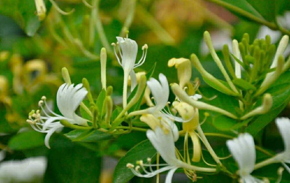 再仔细一瞧,发现金银花的花苞是淡绿色的,呈棒槌形,后来慢慢地变成白色。接着开出了一朵朵喇叭形的花。随着时间老人渐渐走远,白色的花换上了一套黄色的衣服。这时,如果你的鼻子与花儿亲密接触,一阵清香便会扑鼻而来,让你感到无比的惬意。