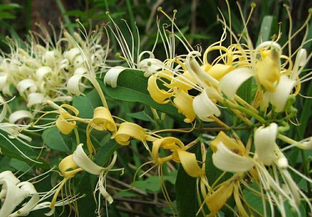金银花不仅外表非常美观,而且花和藤可做药材或制成饮料喝,但更让我喜爱的是它那顽强的生命力。无论在山坡上、路边、房前屋后到处都能看见它那婀娜多姿的身影。它们紧紧地抓住其它植物的身体坚强地生活着。