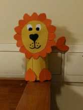 说起它的制作,还真是一个巧合。一个周六的下午,我写完了所有的作业,在家中百无聊赖,想着做点什么。突然灵光一闪,计上心来,就做一只大老虎吧。于是,我就开始准备了,先是查看了网上的模型,继而翻箱倒柜的找出了所需要的材料:卡纸、剪刀、胶水等等。材料找齐以后,我就开始动手操作了。先用纸剪下一块圆形当做它的头,在另一张纸上画出一双威武的大眼睛和嘴巴,将画出来的嘴巴和眼睛剪下来粘到头上,并用水彩笔在额头中间写下霸气的"王"字。接下来,该给它做身子了,我用卡纸折成一个圆柱体作为身体,在身体上粘上四肢,四肢做的比较可爱。最后要给它做尾巴了,在剪的时候,由于自己不小心,剪坏了,正当我重新拿纸做的时候,却发现纸已经用完了。这时候我就在考虑,是就这样凑合着用呢还是追求完美去买纸重新做,经过一番思量,我还是决定去买纸重新做,既然做了,那就要做到完美。商店距离我家两公里左右,虽然不算太远,但是一来一回的路程也足以让我气喘吁吁了,虽然很累,但是一想到这个完美的作品,再累也是值得的。在重新做的时候,我吸取了上次的经验,剪得时候小心翼翼,认认真真,最后终于成功的做出来了。看着摆在我面前的老虎,身体上的疲惫瞬间一扫而空了。