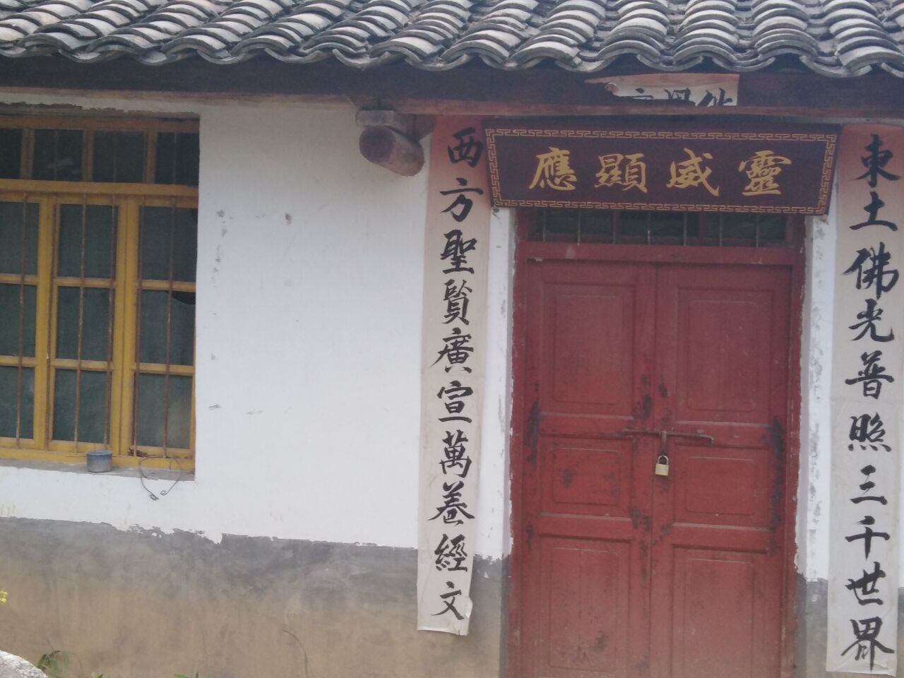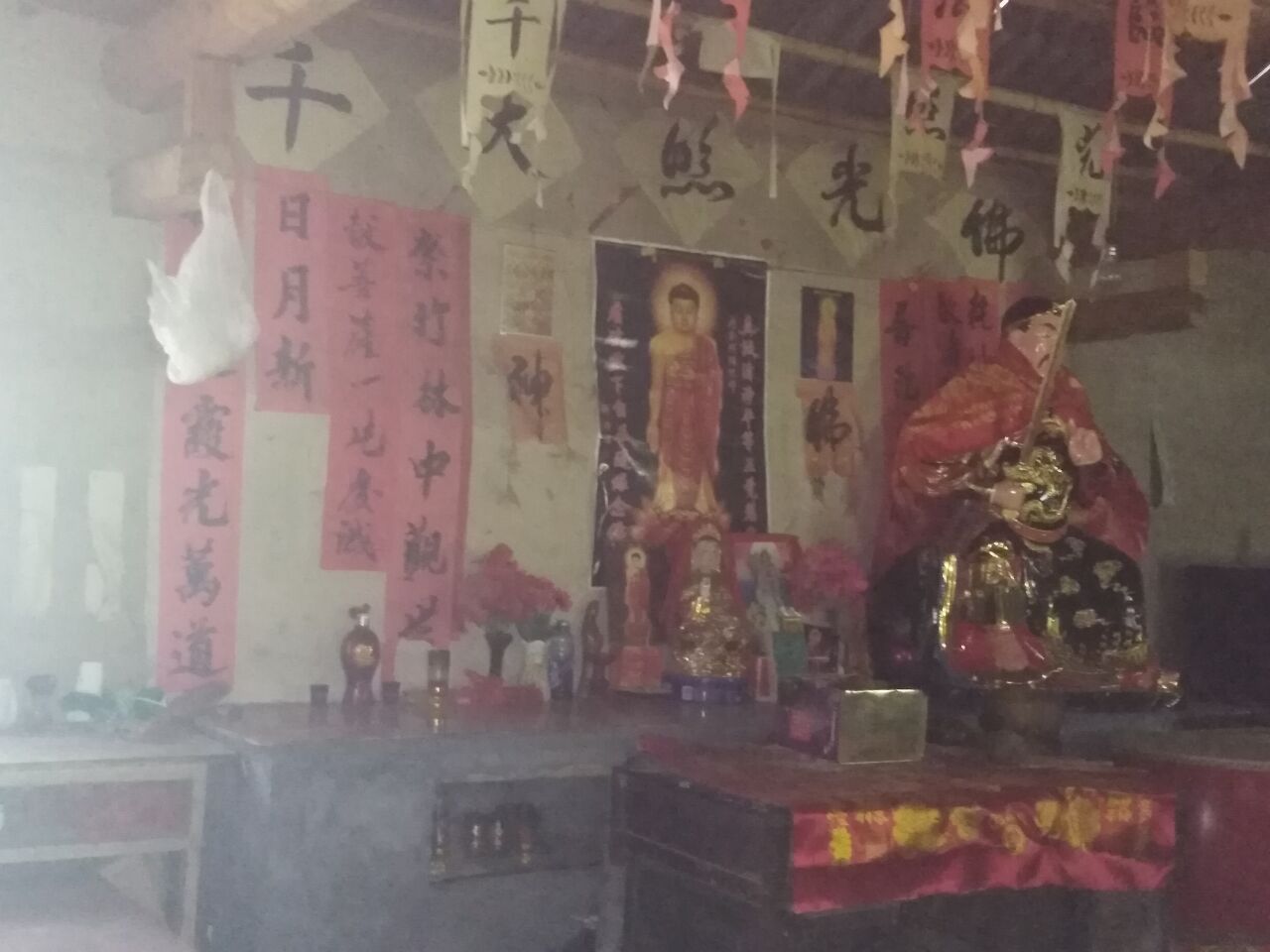 这个寺庙的院子很小很小,因此显得院中几根柏树硕大无比。虽然已是深秋了,但他们还是那么苍翠挺拔。走进庙门口,首先映入眼帘的便是那工艺精良的门和窗子。这个寺庙很小,只有三个房子,一间是厨房,还有一件事,每年庙会的厨房,还有一间是一个小寺庙。这里可以说是荒山古寺,为什么这么说呢?因为这里只有每年庙会才会有许多人 ,进入门里就会看到三尊做工精美的佛像,其中,最引人入胜的还是那身高50厘米的大佛像,她是神态安详的眯起眼睛让感让人感到一种幽默的感觉。他的头陈椭圆形,双手合并放在胸前,身子不是太长,也不是太胖,双腿盘坐。他的旁边还有两个小佛像,两个小佛像也都是神态安详的眯起眼睛眯起双手合并放在胸前,腿呈盘坐的样子。
