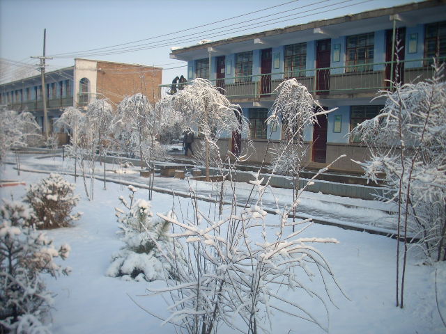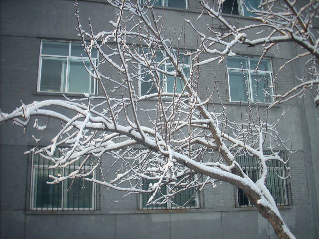 这颗被遗忘在校园角落里的刺枚树显得有些孤单,而且被春雪盖了一层棉被后,显得很憔悴。没关系,有一句话说:"不经历风雨,怎么见彩虹"我想,这棵树经历风雨后会开的比以前会更加鲜艳的。