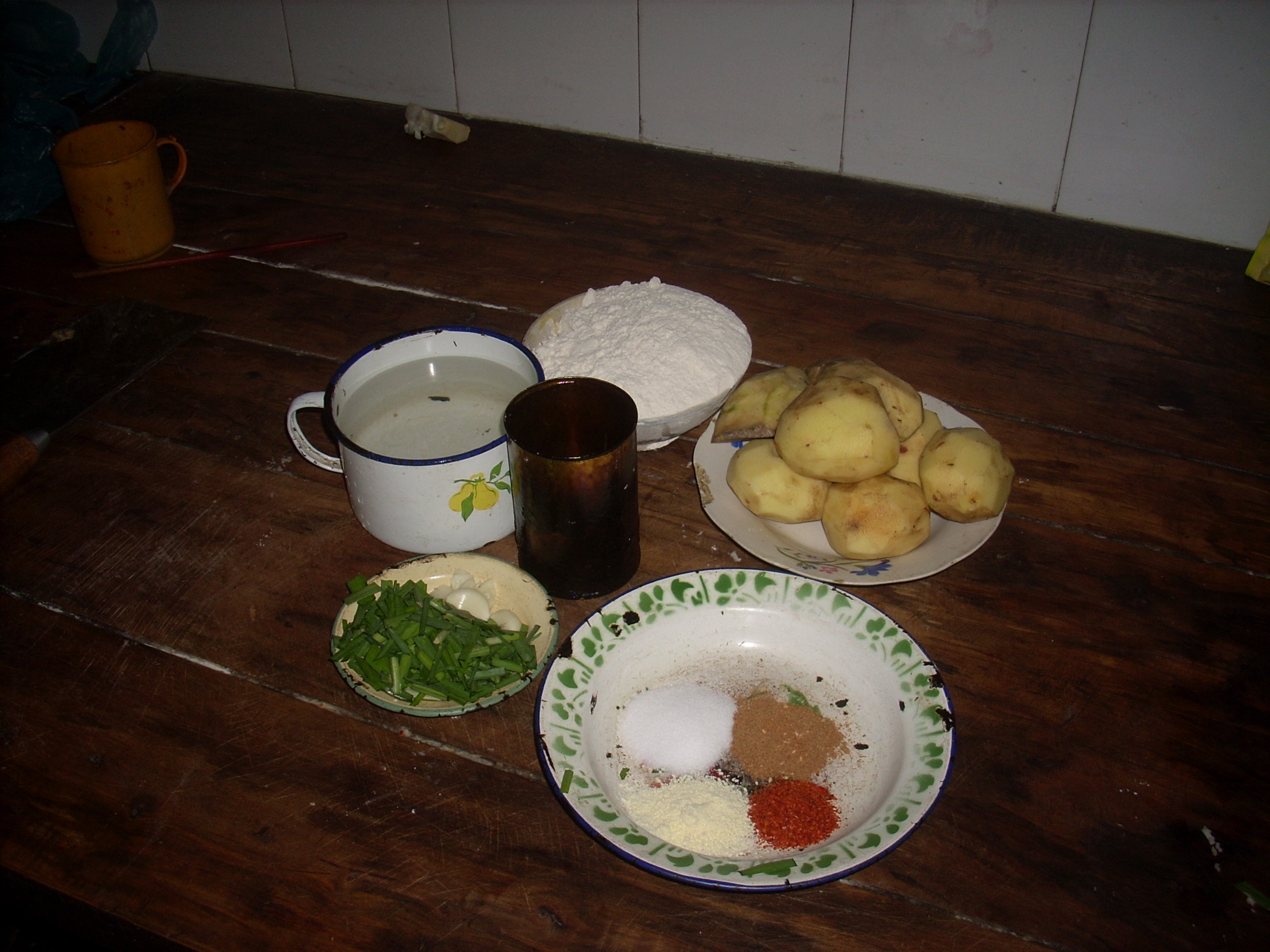 她还有一个拿手菜,摊馍摸.这个菜是我们家乡少有的菜肴.首 先我来介绍一下做它的材料:主料有土豆,面 ,水;配料有麻辣调料,鸡精,葱花和盐.