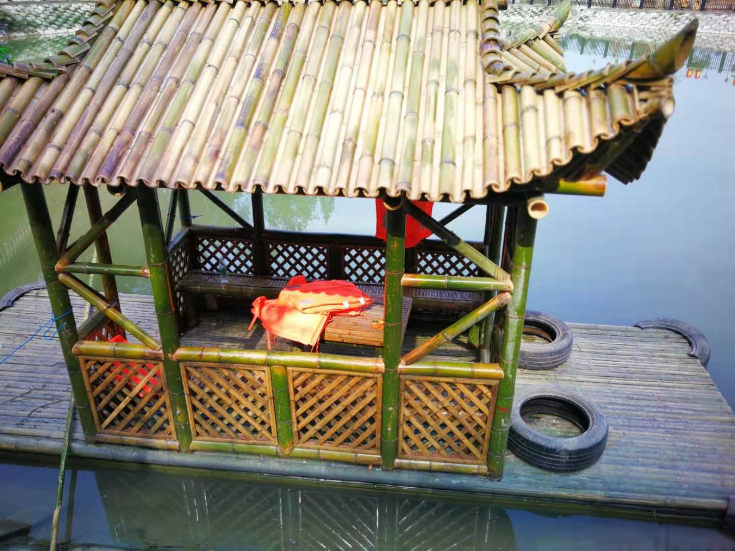 河上停泊的竹船在述说一弯风景